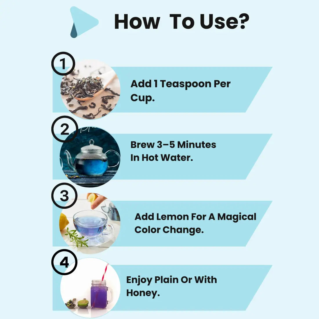 - Rich in Antioxidants & Aids Digestion: Blue Pea flowers are celebrated for their antioxidants, while mint contributes to improved digestion and a sense of calm and clarity.